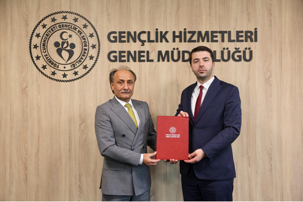 Protokü, Gençlik Hizmetleri Genel Müdürü Dr. Enes EFENDİOĞLU ve BGD Yönetim Kurulu Başkanı Prof. Dr. Mustafa ALKAN, Bakanlık binasında, kurum ve dernekten katılan yetkililerle işbirliği ptotokolünü imzaladı.