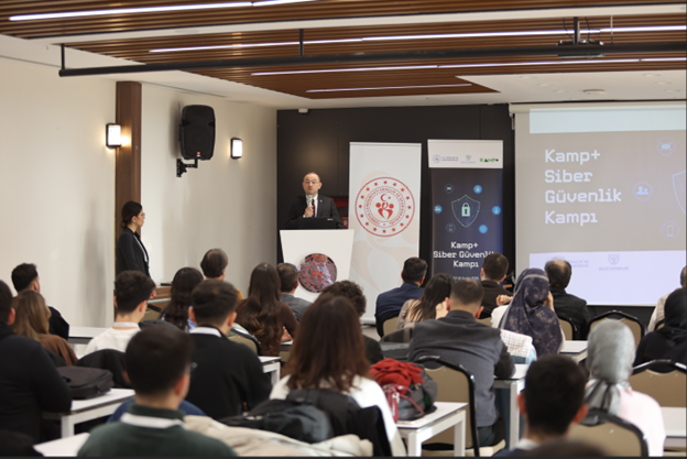 Bu etkinliklerden ilki olarak, Gençlik Hizmetleri Genel Müdürlüğü’nün, Bilgi Güvenliği Derneği işbirliği ile, gençlerin siber güvenlik alanına olan ilgilerini artırmak, dijital tehditlere karşı farkındalık oluşturmak, uygulamalı eğitimlerle teknik becerilerini geliştirmek ve ülkemizin nitelikli insan kaynağına katkı sağlamak amacıyla KAMP+ Siber Güvenlik Kampı Eğitimi gerçekleştirildi.